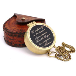 手作り真鍮コンパスパーソナライズされたレザーケース付きポータブルヴィンテージ航海彫刻引用