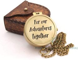 真鍮コンパスレザーケース「私たちの冒険のために」引用航海ポケットポインターキャンプハイキング旅行ポータブル