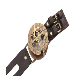 수제 Steampunk 황동 해시계 나침반 손목 시계 진짜 가죽 스트랩 빈티지 해상 포켓 스타일 골동품 선물